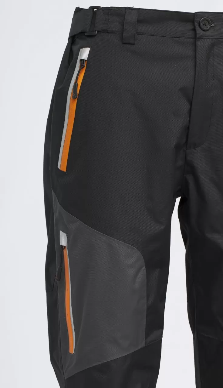 • • Peş kumaş ve ayarlanabilir Velcro kayış ile bacaklarda uzun fermuarlar